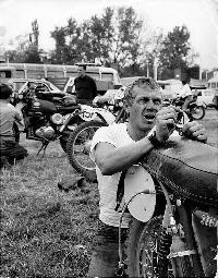 Bud Ekins, his old buddy, famous for the motorbike stunt in The Great Escape).